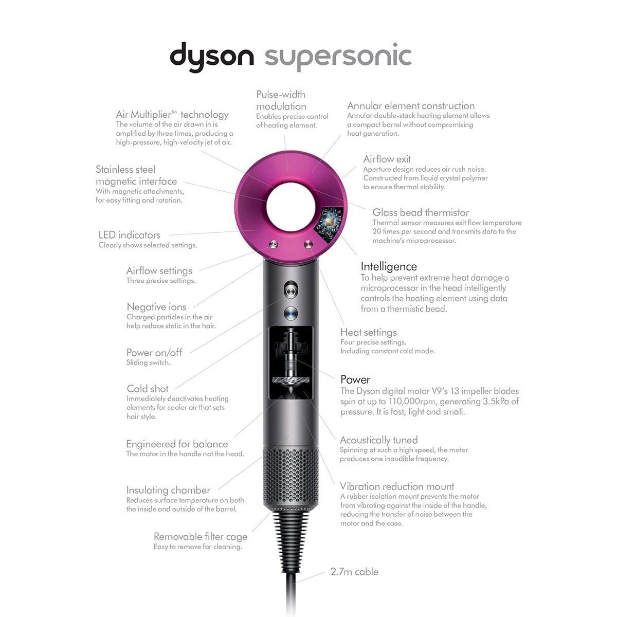 - Dyson supersonic has intelligent heat control that prevents hair from extreme heat damage to protect natural shine