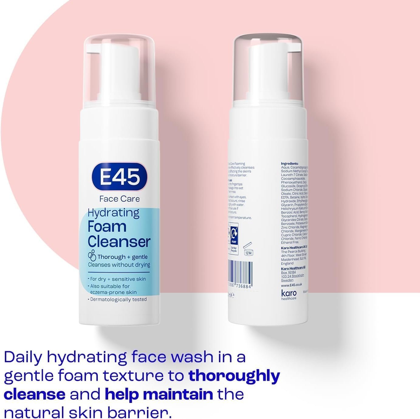 - DERMATOLOGICALLY TESTED – E45’s facial cleanser has been tested by dermatologists and specifically designed for facial skin. Its gentle formulation means it effectively cleanses the face and takes care of your skin without affecting the skin’s natural moisture barrier or drying out the skin. The foaming cleanser is easy to use as part of your daily routine and reaches deep into pores to draw out dirt and impurities, so you only need to gently rinse it off, leaving you with clean, soft skin.