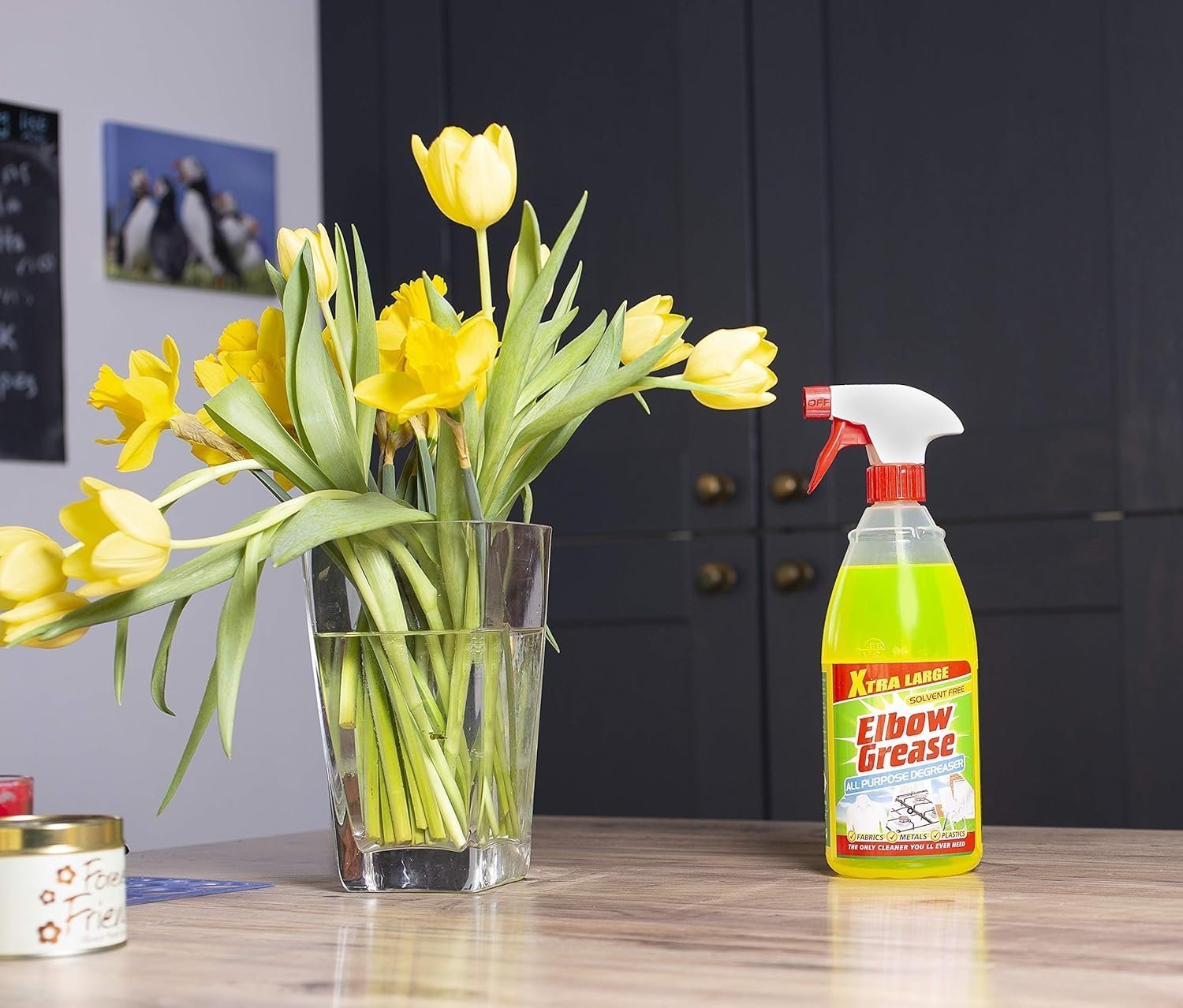 - ELBOW GREASE ALL PURPOSE DEGREASER: Remove grease and oil stains with this extra-large bottle of All Purpose Degreaser, the miracle product from Elbow Grease, with thousands of positive reviews and happy customers. The all-purpose cleaning spray that has taken social media by storm and is a firm favourite of Mrs. Hinch, the social media sensation together with her army of Hinchers
