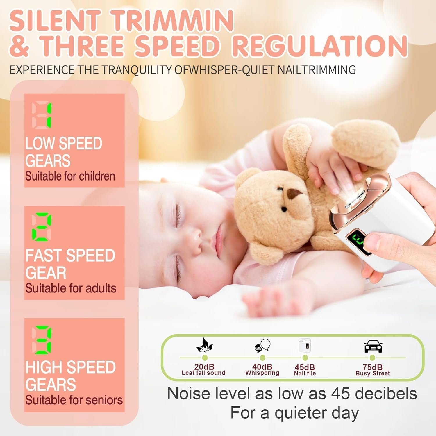 - Simple One-Button Controls: Baby Nail Trimmer Electric is designed with ease of use in mind. The controls are elegantly integrated into the sleek body, featuring a single button that activates both the nail trimmer . This intuitive design means that there’s no need to fumble with multiple buttons or switches, making it accessible and straightforward for users of all ages, including children and the elderly.