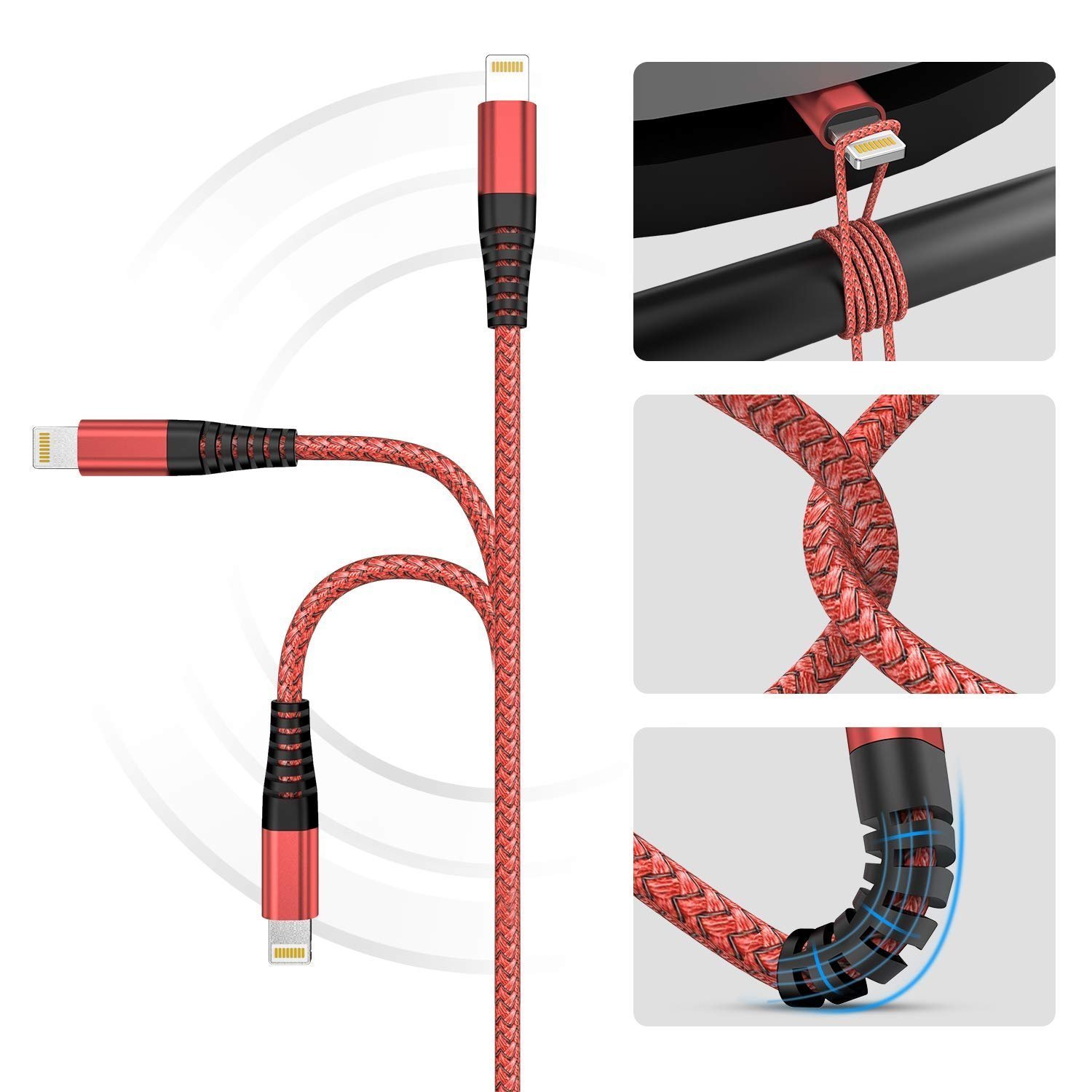 - Creative New construction: Reinforced iPhone charger cable with special SR joint design that have passed 40000+ times bending tests for extra protection and durability. The solid and durable two-shade braided armor nylon shield gives the cable stronger protection and flexible performance than others and no need to worry about tangling, effectively prolong the service life.